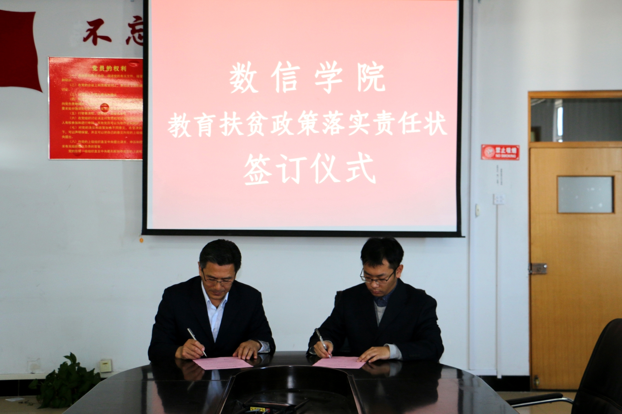 为贯彻落实张福喜副校长9月29日在学校教育扶贫政策落实责任状签订仪式上重要讲话精神,按照学校学生处对各二级院(系)教育扶贫政策落实责任、建立责任追究制度、层层签订责任状等相关要求,Beat365官方网站党政领导班子从讲政治、讲纪律、讲大局的高度对此项工作高度重视,亲自部署,快速反应,狠抓落实。