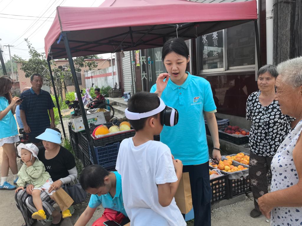 活动尾声,智能机器人和VR眼镜吸引了众多村民尤其是儿童围观。实践团成员们借着孩子们对机器人的兴趣,讲解其中的科学原理。当孩子们戴上 VR 眼镜,看到海底的各种生物时,眼中闪烁着好奇的光芒。