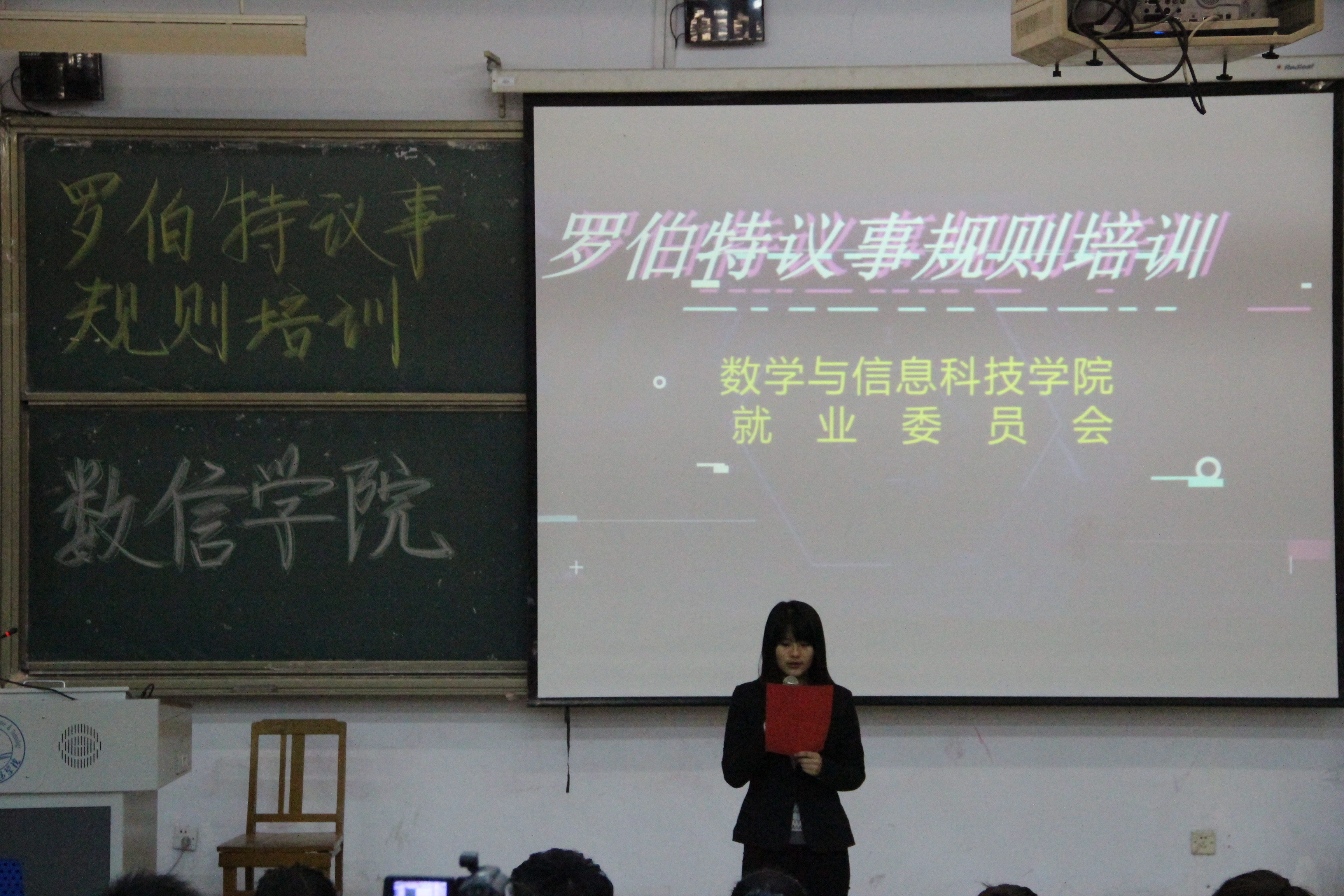 为了培养学生的会议组织能力,提高学生的就业竞争力,2017年12月3日晚7:00,Beat365官方网站在逸夫楼B104举办了学生干部罗伯特议事规则培训。学院负责就业的教师和全体学生干部参加了此次培训。