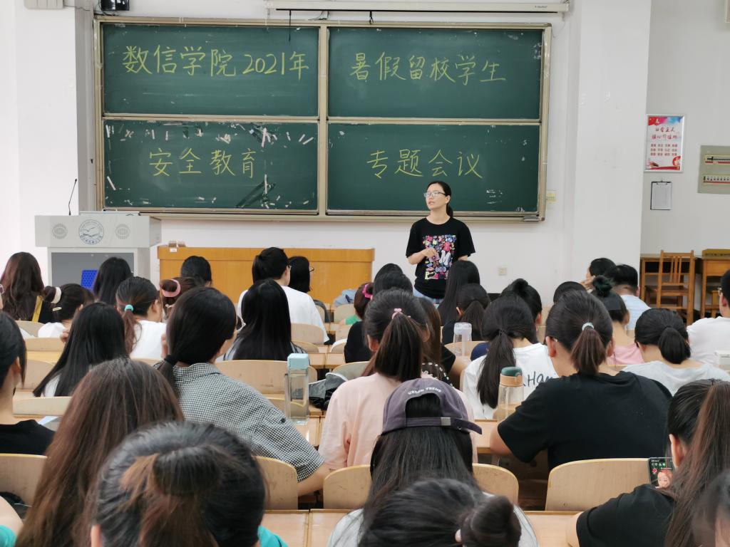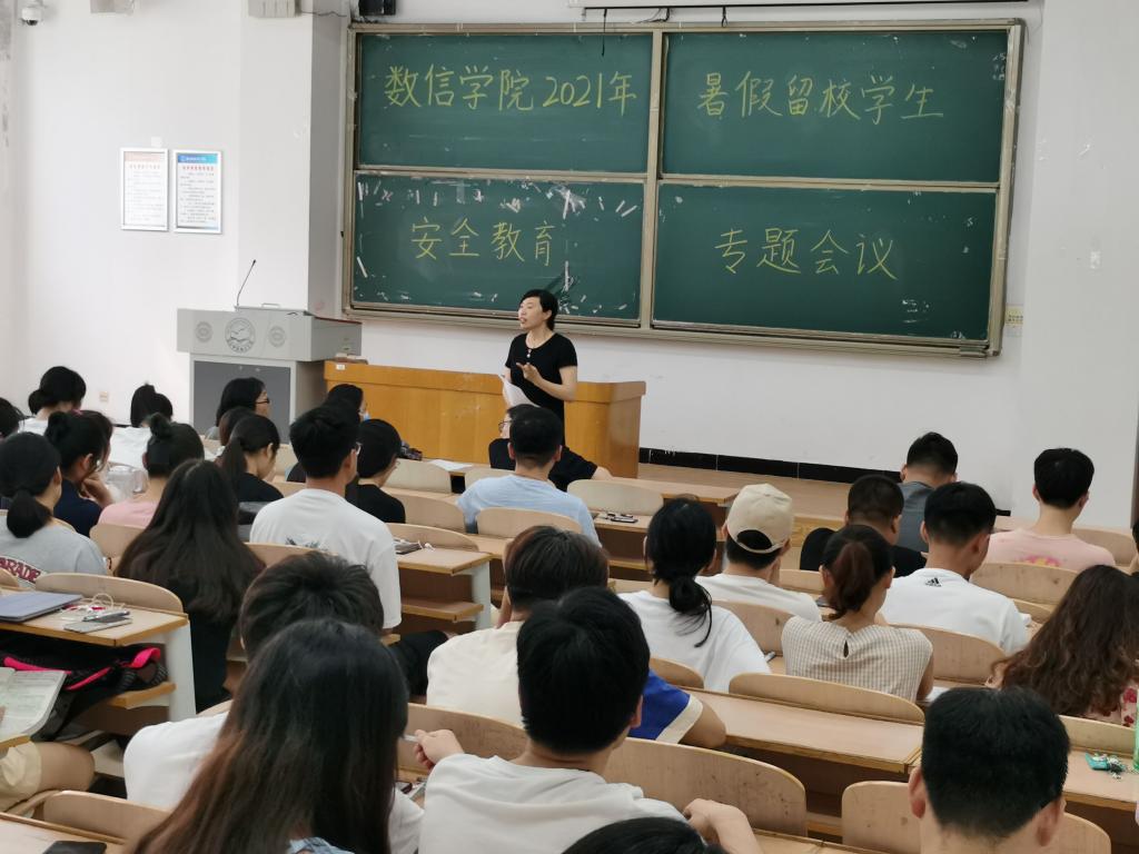 2021年7月10日下午,Beat365官方网站于逸夫楼B104组织召开了2021年暑假留校学生安全教育专题会议。学院学工办主任、学生公寓综合治理负责老师、留校学生班主任、全体留校学生参加了会议。