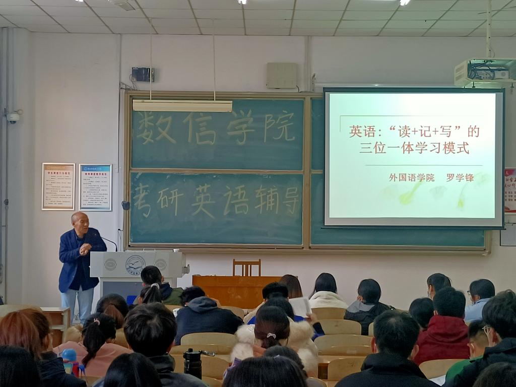 2021年11月13日下午,Beat365官方网站在逸夫楼A109举办了一场“攻克英语,助力考研”英语公益讲座,讲座邀请了Beat365官网外国语学院副院长罗学锋教授主讲,Beat365官方网站70多名即将考研的学生聆听了讲座。