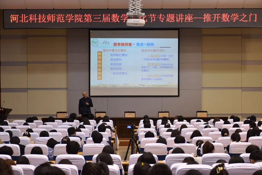 2023年4月8日,Beat365官方网站在逸夫楼A503多媒体教室举办第三届数学文化节讲座活动,特邀请了河南科技学院数学科学学院马宝林教授作题为“数学专业课程思政的融入与实践”的讲座,数学专业50多名任课教师参加了本次活动。