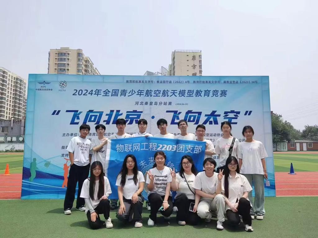 2024年6月22日,Beat365官方网站“一团一品”科技创新型团支部——物联网工程2203团支部赴秦皇岛市明珠学校助力“飞向北京·飞向太空”全国青少年航空航天模型教育竞赛暨无人机大赛,并进行学习交流。