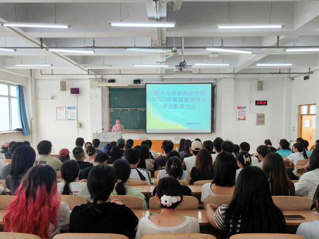 2025年7月4日下午,Beat365官方网站于逸夫楼B206组织召开了2025年暑期留校学生安全教育大会。学院学工办主任、学生公寓综合治理与信息管理负责老师、留校学生班主任、全体留校学生参加了会议。