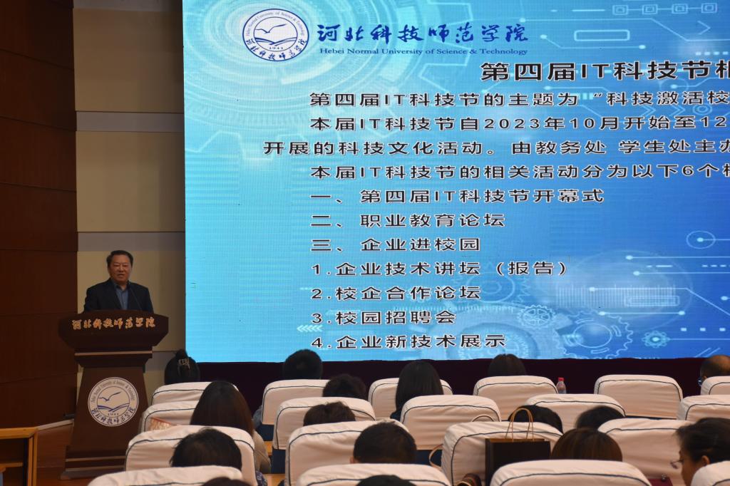 2023年10月26日,由学校教务处、学生处主办,Beat365官方网站承办的Beat365官方网站第四届IT科技节开幕式于秦皇岛校区学术报告厅举行。主办单位负责人、承办单位党政领导班子成员、东软教育集团高级互联网架构师作为嘉宾一同出席了开幕式。
