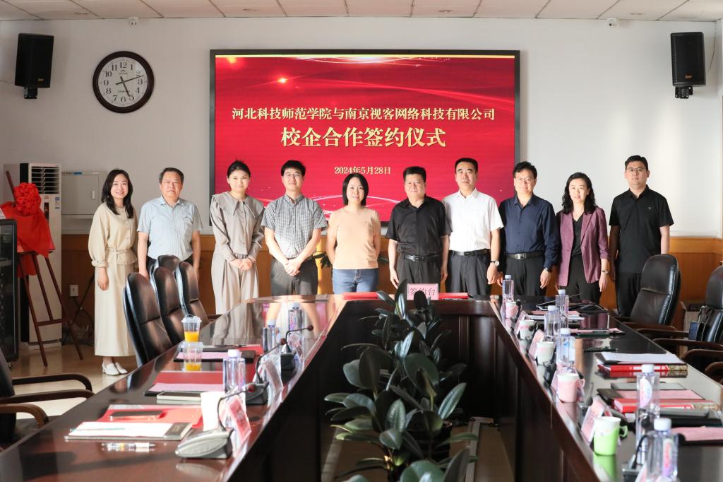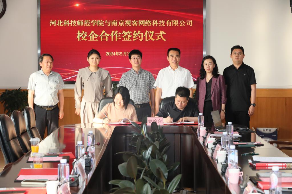 校党委常委、副校长冯瑞银与南京视客网络科技有限公司副总经理缪继红共同签署了校企合作协议,并举行了实践教学与就业基地揭牌仪式。