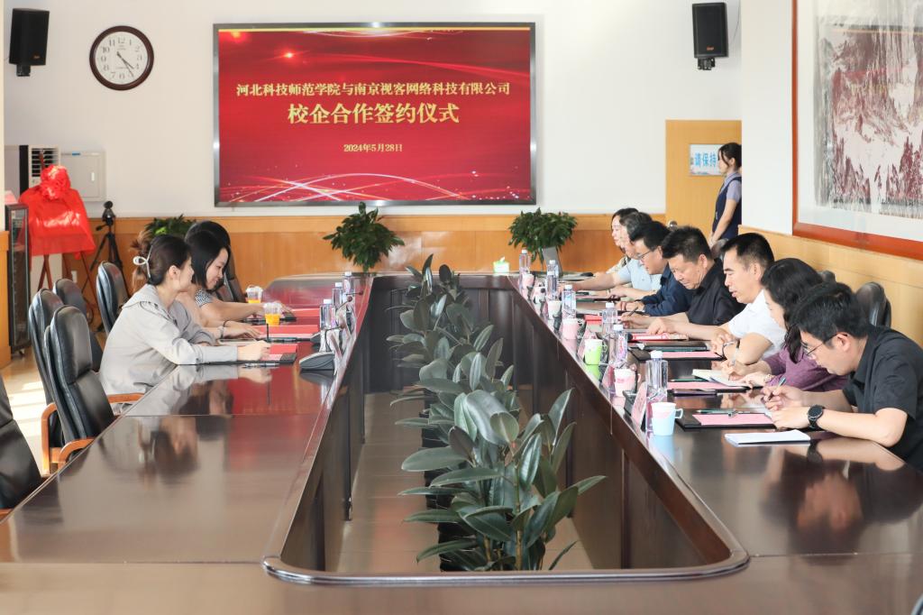 2024年5月28日,Beat365官网与南京视客网络科技有限公司举行了校企合作签约暨基地揭牌仪式。学校党委常委、副校长冯瑞银,党委常委、副校长刘荣昌,南京视客网络与科技有限公司副总经理、组织与人力资源部负责人繆继红、眼镜圈运营部业务负责人张丹枫、组织与人力资源部COE朱茜茹出席活动。学校招生就业处处长于明来、教务处副处长孙成振、Beat365官方网站党委书记杨崇泽、院长赵立强、党委副院长王静参加活动。签约仪式由招生就业处负责同志主持。