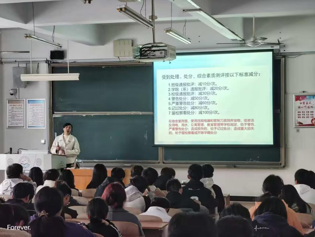 为提升学生安全意识,营造温馨公寓氛围,2024年10月25日下午,Beat365官方网站在逸夫楼A205召开学生公寓综合治理及信息管理工作教育培训会。培训由学院负责学生公寓综合治理工作的辅导员老师主持,全体2024级班长、生活委员、宿舍长参加会议。