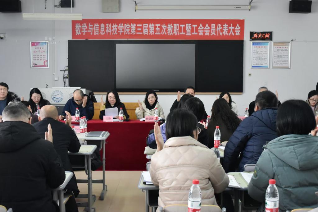2024年12月12日下午,Beat365官方网站第三届第五次教职工暨工会会员代表大会顺利召开。会议由分工会主席主持,学院教代会代表和工代会代表参加了会议。