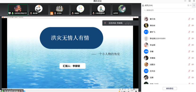 任昌靖、李家硕就实践工作的开展分享了自身经历。任昌靖讲述了个人实习经验、实习收获和实习的美好瞬间,以自身经历为与会同学指明如何有效地进行企业实践。李家硕以“洪灾无情人有情”为主题,展示了自己在今年七月份郑州特大洪灾中的志愿服务经历,讲述了志愿服务工作的积极意义。